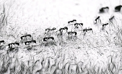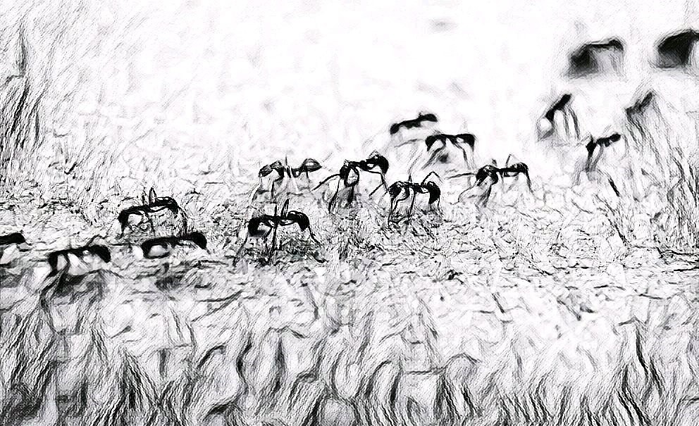 Curious, Mike picked up a stick and went over and wiped across the line of ants. Sitting back, he looked at the clock and watched how long it took for the ants to re-form their line.